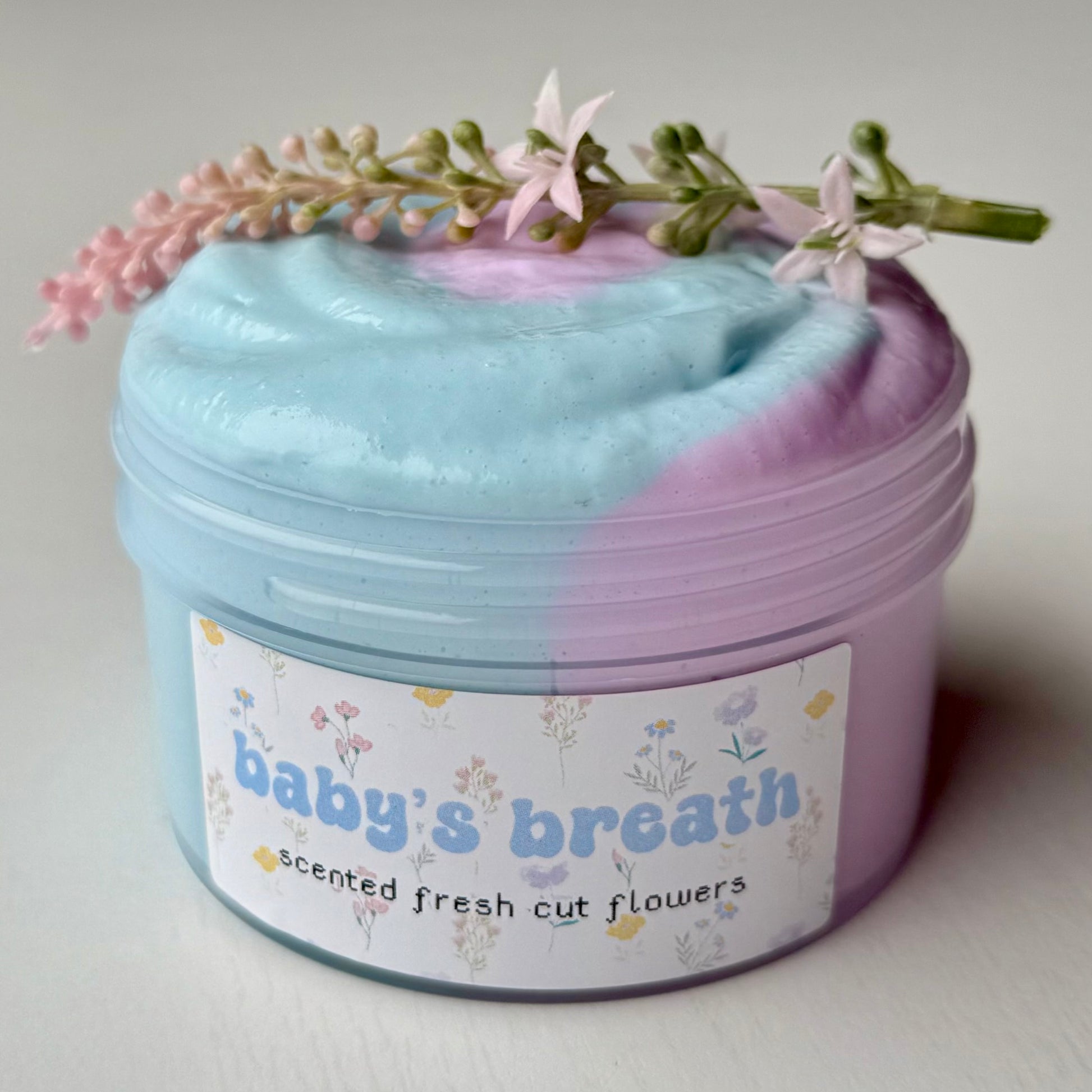our puff slimes are made with 4 different clays, which makes it so soft and inflating! this is a soft and squishy texture that's fun to smush. makes pops and soft sizzles. comes with fake flower on the side (use only for decoration, it will stick to slime)