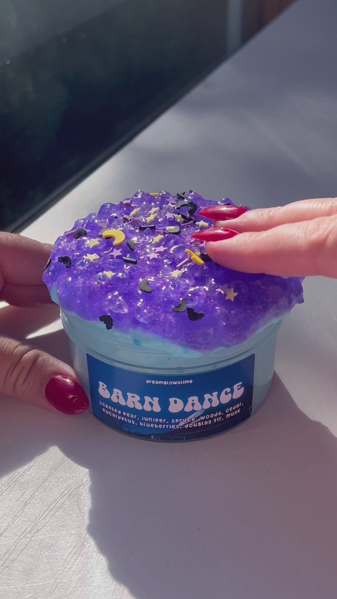 crispy white glue bingsu slime with a glossy coated base. comes with a crunchy silica bead topper that makes the slime extra crunchy. the beads are cushioned well by the bingsu slime, so it's not too painful. the scent is woodsy and mysterious