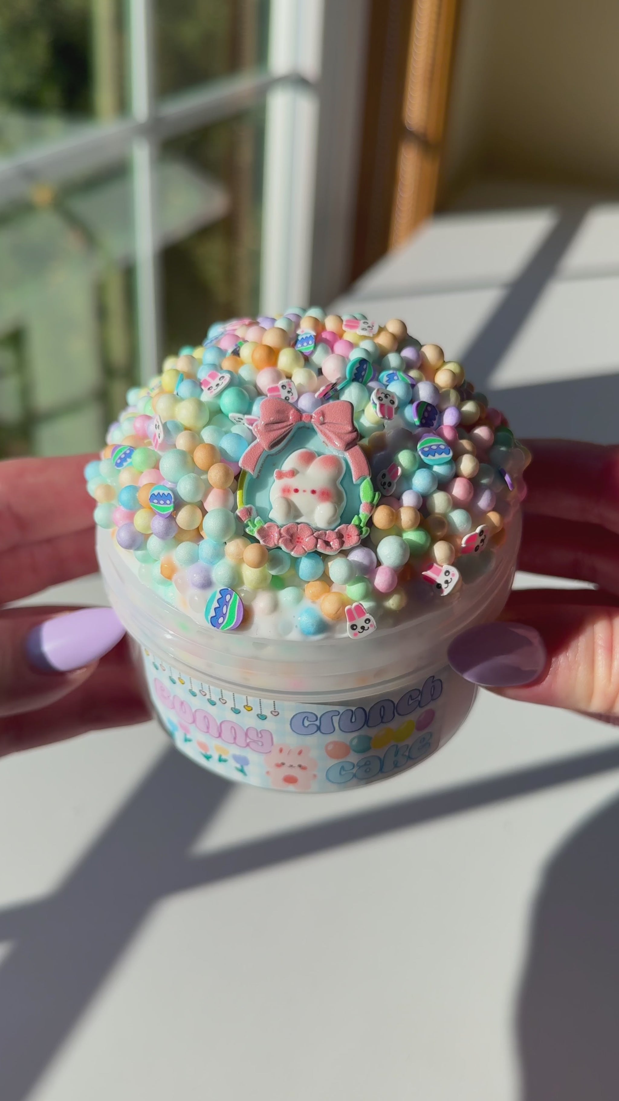 crunchy slushee floam slime with a creamy white glue base. super stretchy and makes lots of bubble pops! comes with cute sprinkles and charm on the side to decorate