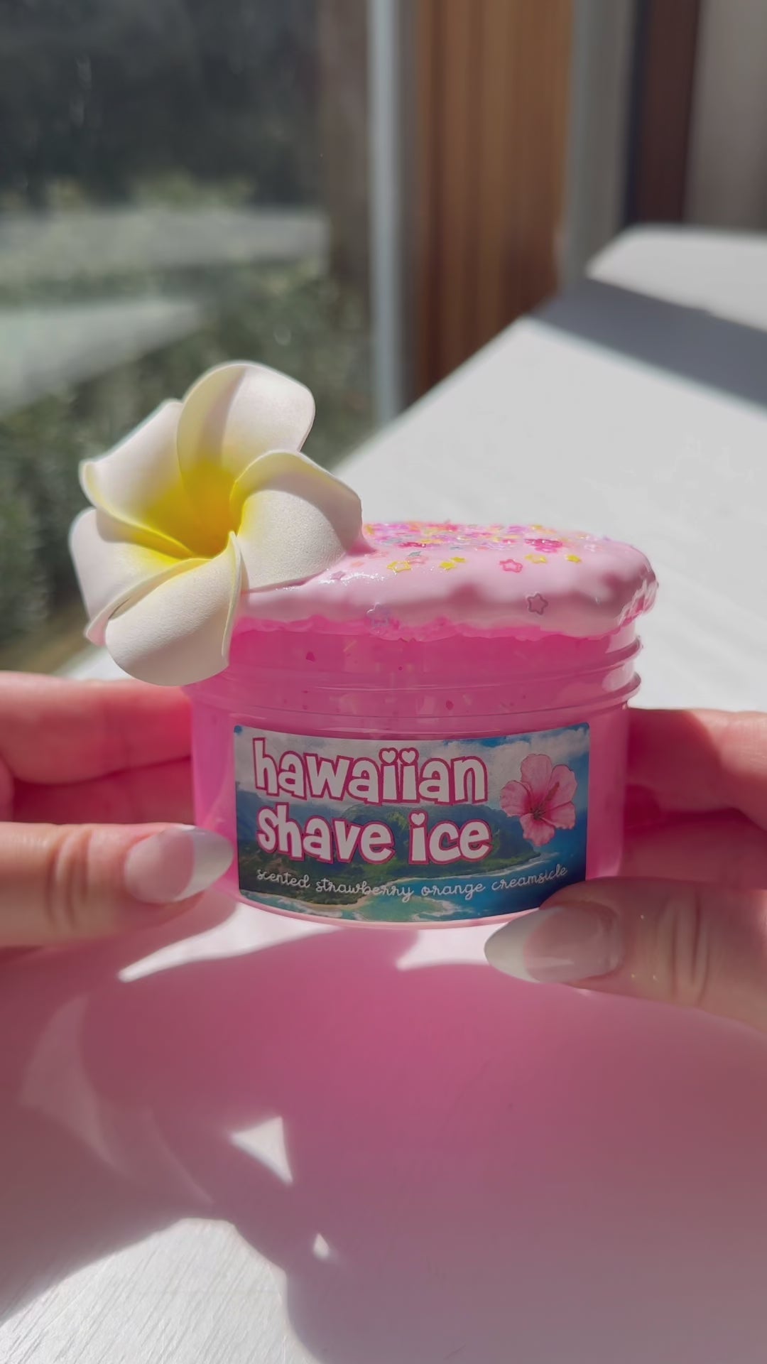 crunchy white glue bingsu that comes with a 1 oz side of mallow topping. when mixed it adds a creamy stretch to the slime. makes great bubble pops!! comes with cute glitters and a foam plumeria flower to decorate