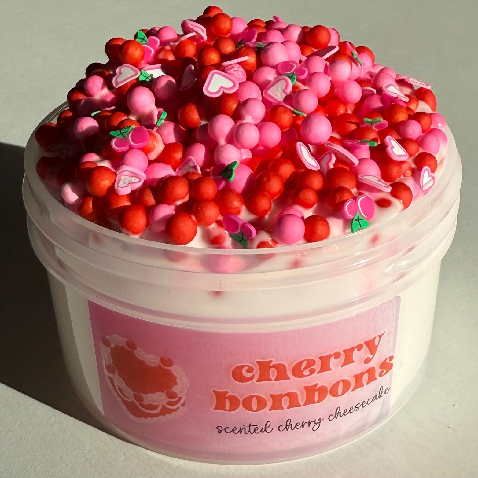 bubbly semi-floam with a creamy white glue base. feels great to crunch and pop! comes with cute heart & cherry sprinkle mix on the side