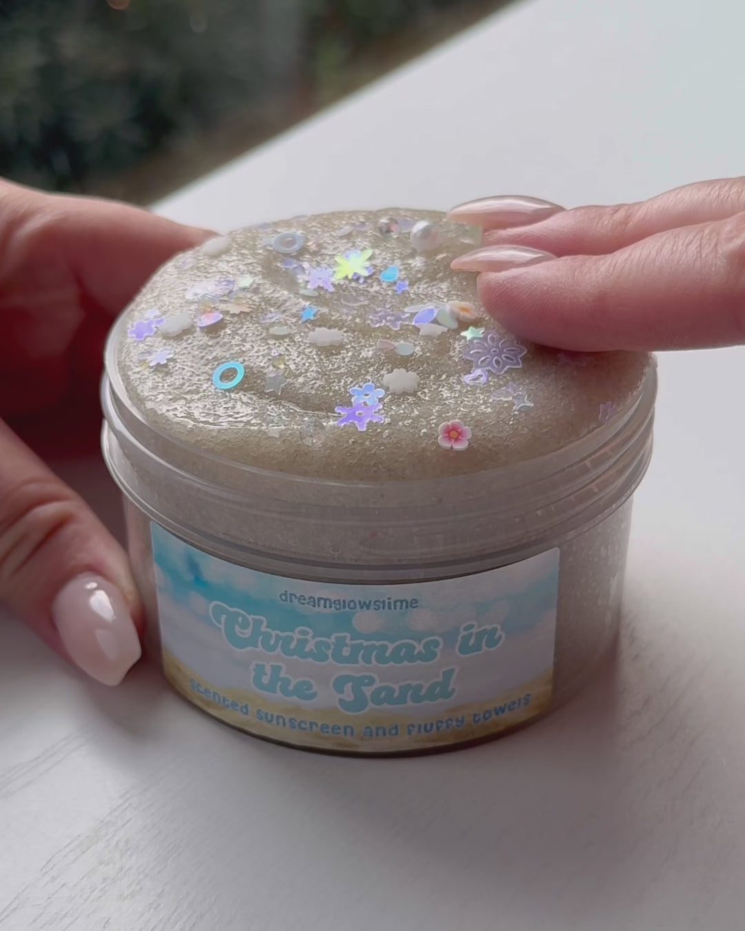 exfoliating and fizzy sand slime that feels great to stretch and squeeze. makes lots of sizzly asmr.