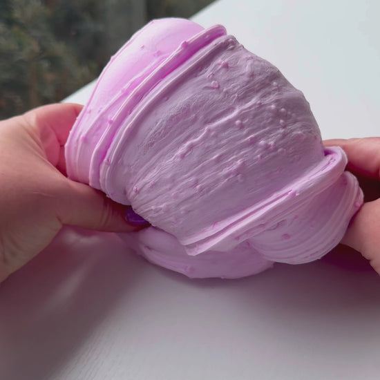 soft, squishy butter with crispy glitter bomb topper. fun texture contrast and lots of bubble pops! comes with cute cherub dog charm