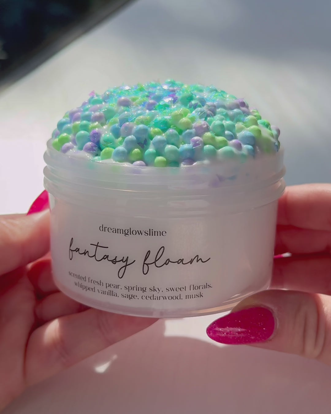 bubbly semi-floam with a creamy white glue base. feels great to crunch and pop! comes with pretty butterfly glitters on the side