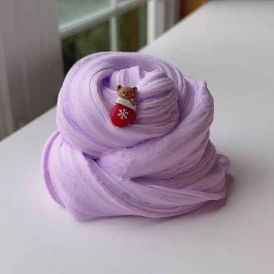 soft, squishy snow butter that feels great to squeeze, smush, and pop. inflates to make sizzles. lightly coated so it’s not sticky. comes with mitten bear charm and snowflake glitter on the side for decoration
