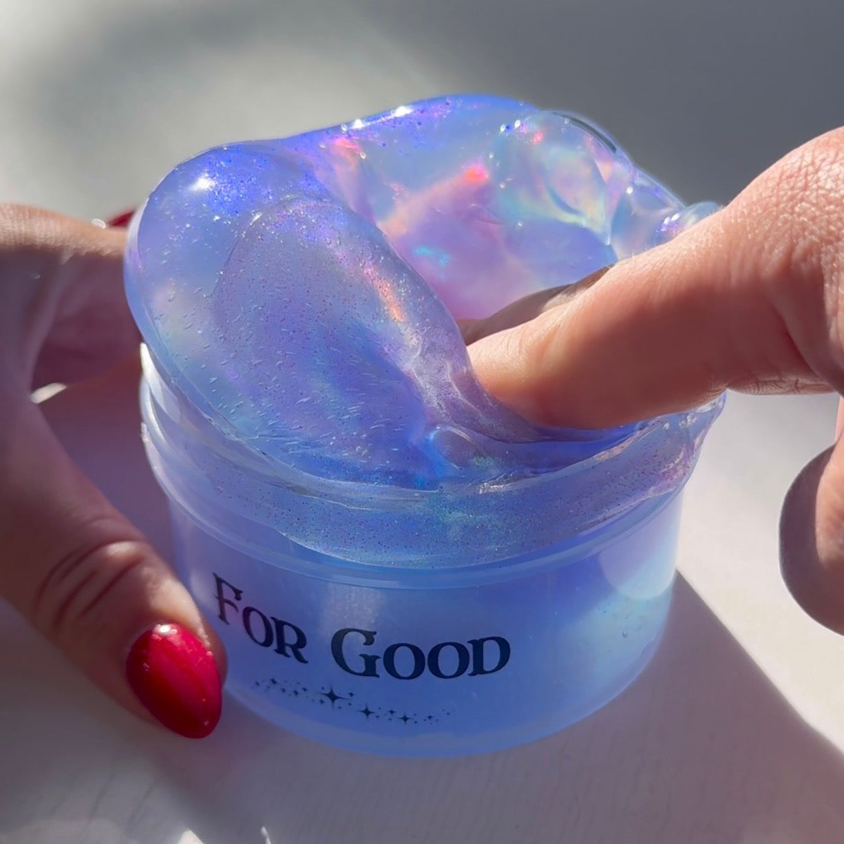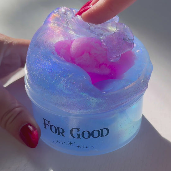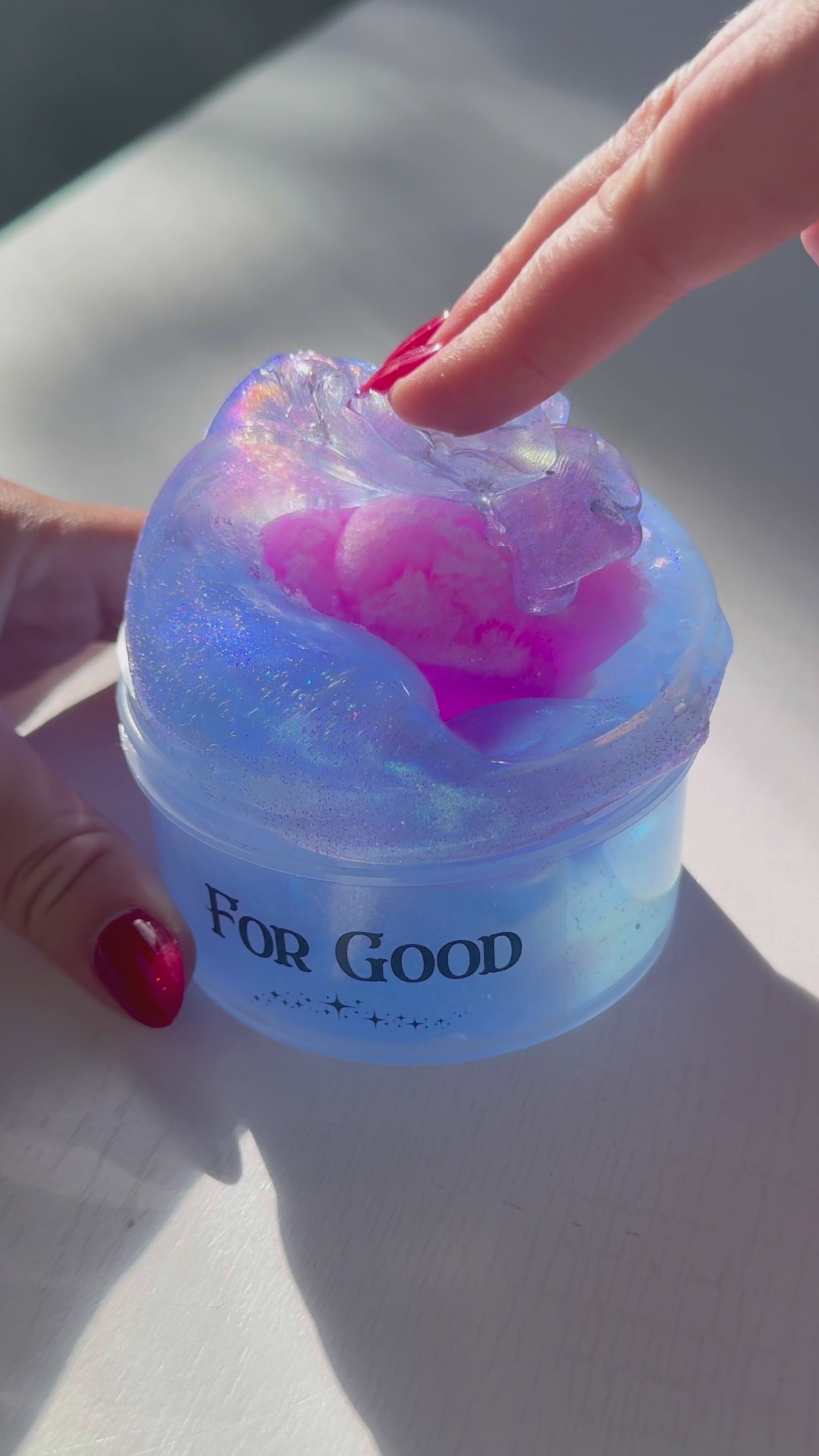 beautiful pigmented coated clear slime with fluffy 2 oz icee topper. when mixed, it turns into a juicy jelly texture! fun to squeeze, stretch, and pop.
