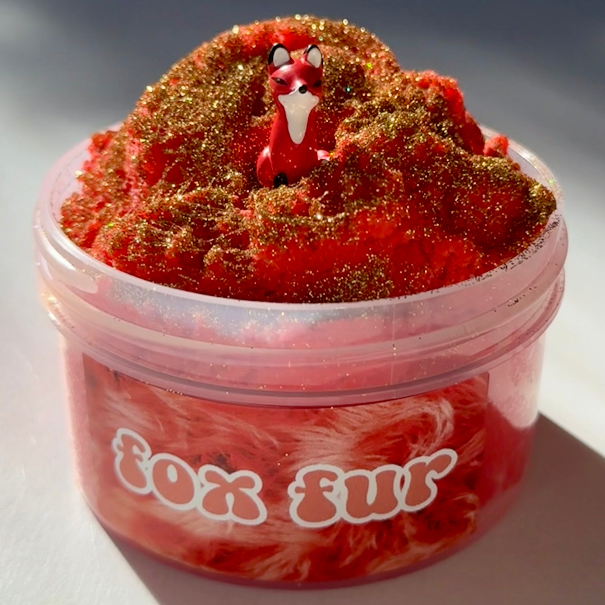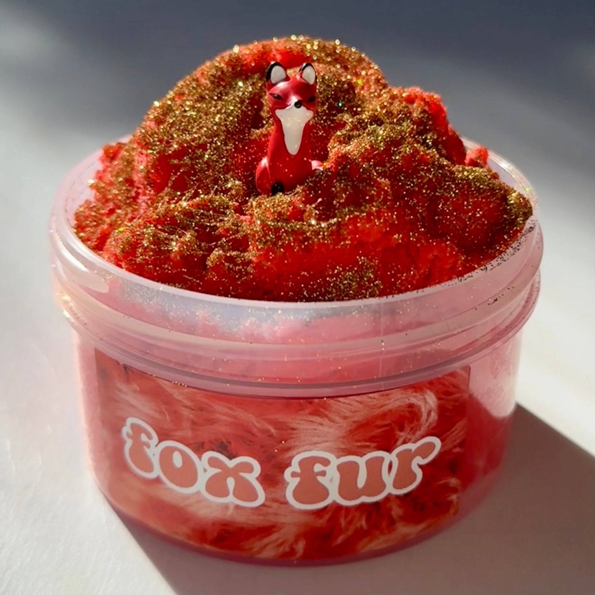 super fluffy cloud slime that makes amazing drizzles! fun to stretch and squeeze. great texture for beginners. this slime has no sticky feeling & doesn't need to be activated often. comes with gold holo glitter and cute fox charm on the side