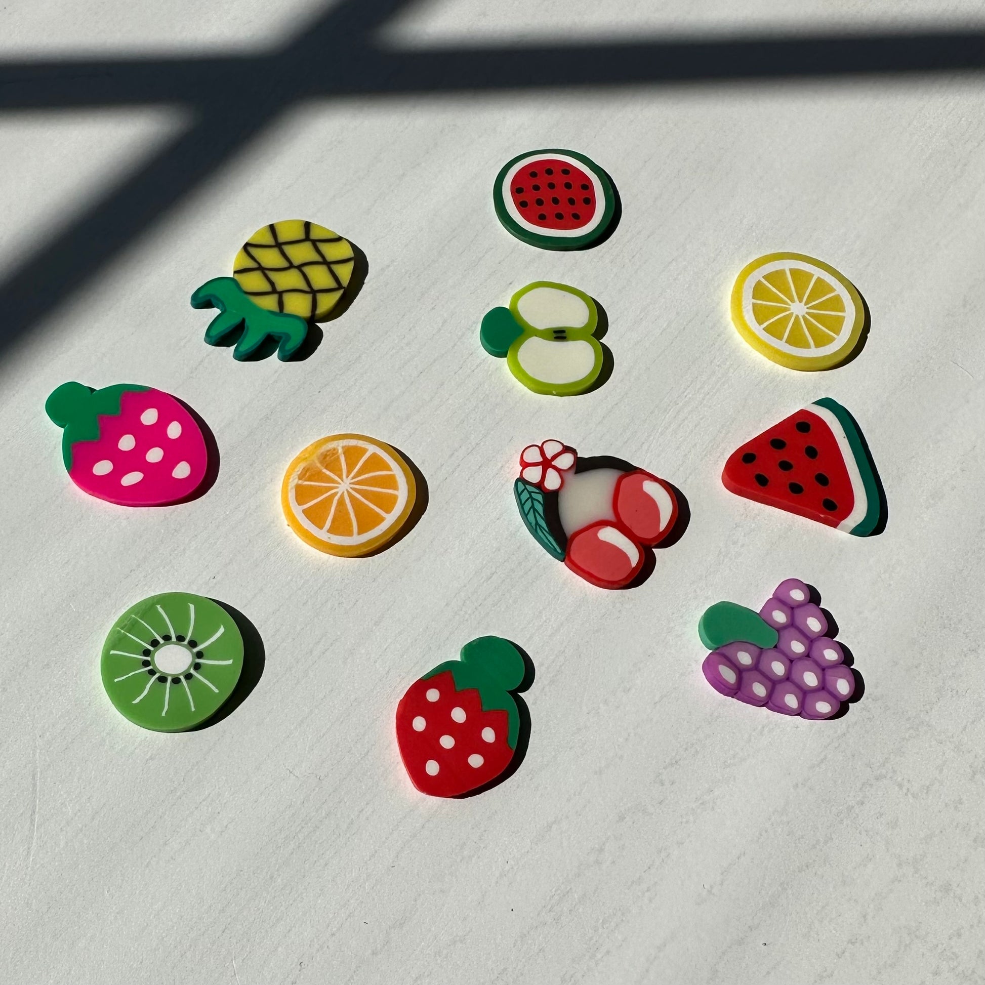 new thick slay/butter with snowfizz. super unique and sizzly. feels good to inflate & squeeze. comes with 4 random giant fruit fimos on the side. they're so fun to pop out of the slime!