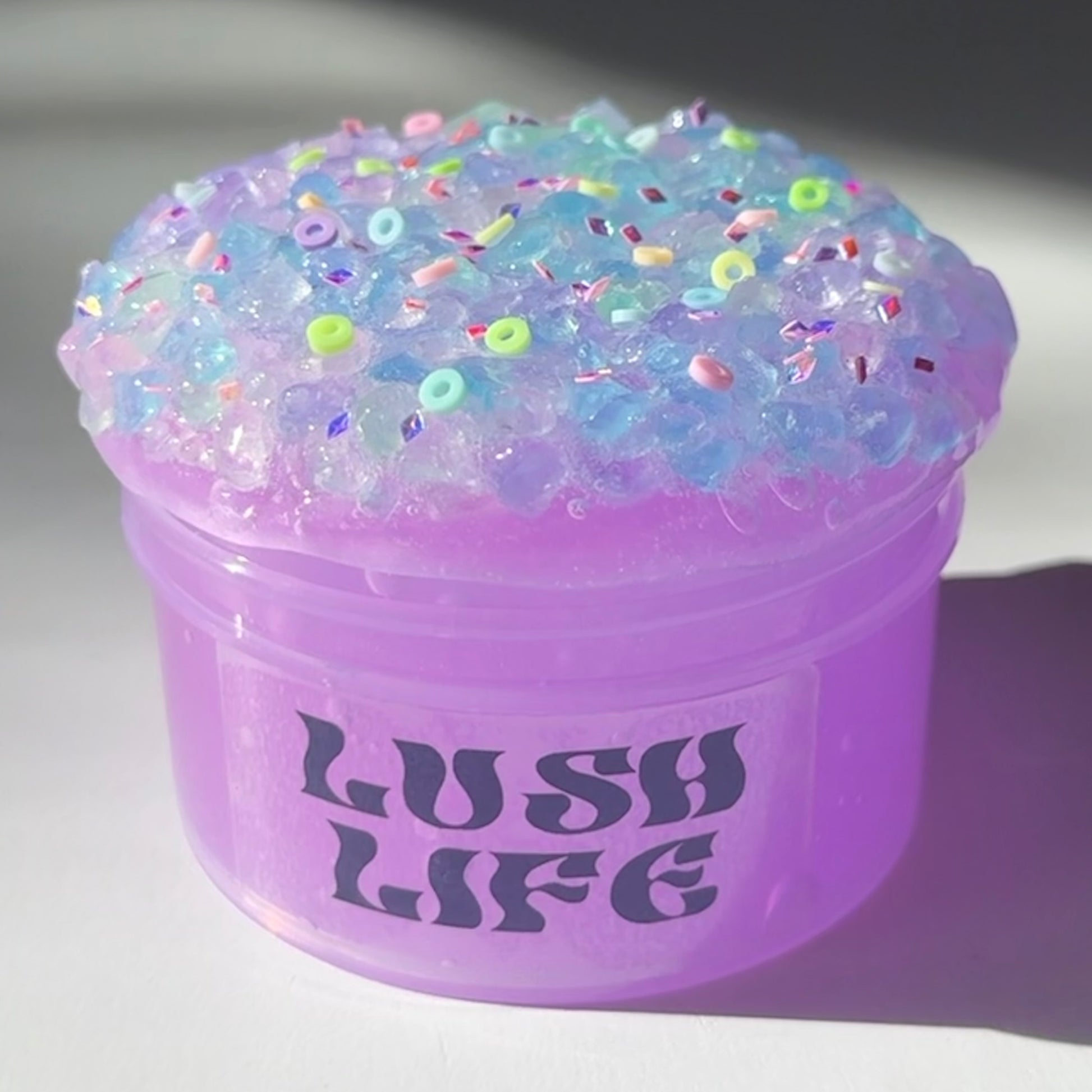 squishy and juicy coated jelly slime with a crunchy silica topper. great for bubble pops! comes with sprinkles & glitter on the side
