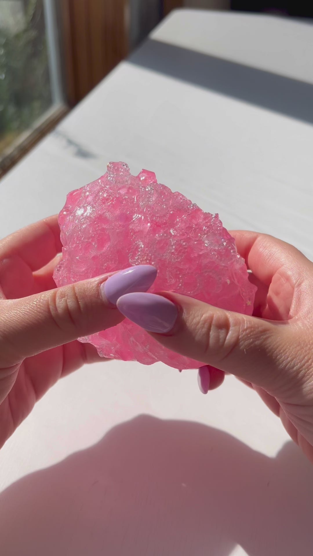 super crunchy silica ring bead slime with a coated base that makes it less sticky. so fun to stretch and squeeze and pop!! topped with shimmery pink glitters