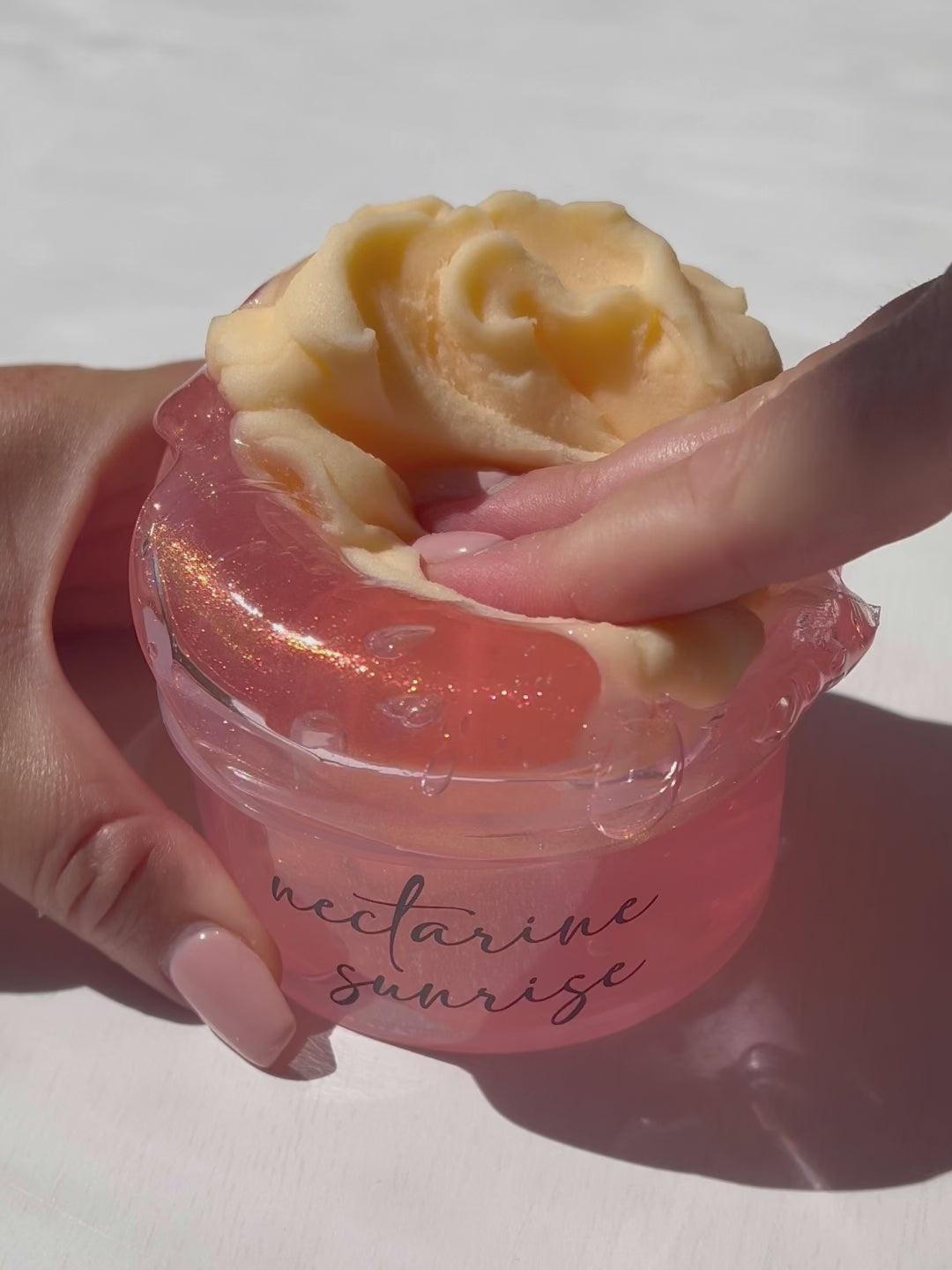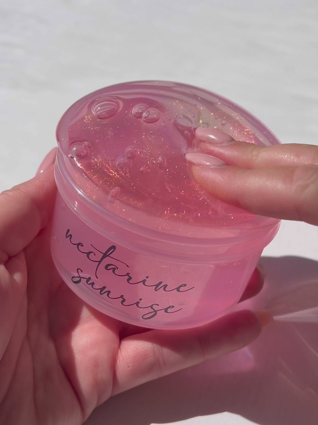 beautiful pigmented coated clear slime (unscented) and 2 oz scented icee on the side. play with them separately and when you're ready, mix them together however you want! mixes to a juicy jelly texture. fun to squeeze, stretch, and pop.