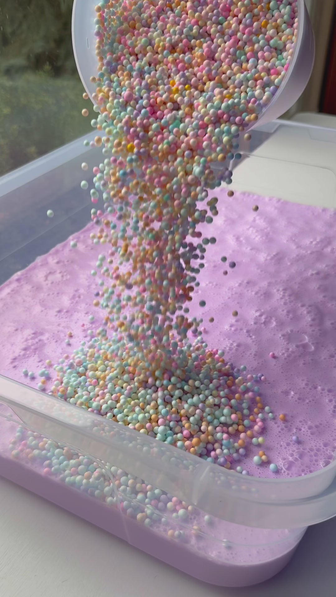 bubbly semi-floam with a creamy white glue base. feels great to crunch and pop! comes with cute sprinkles on the side