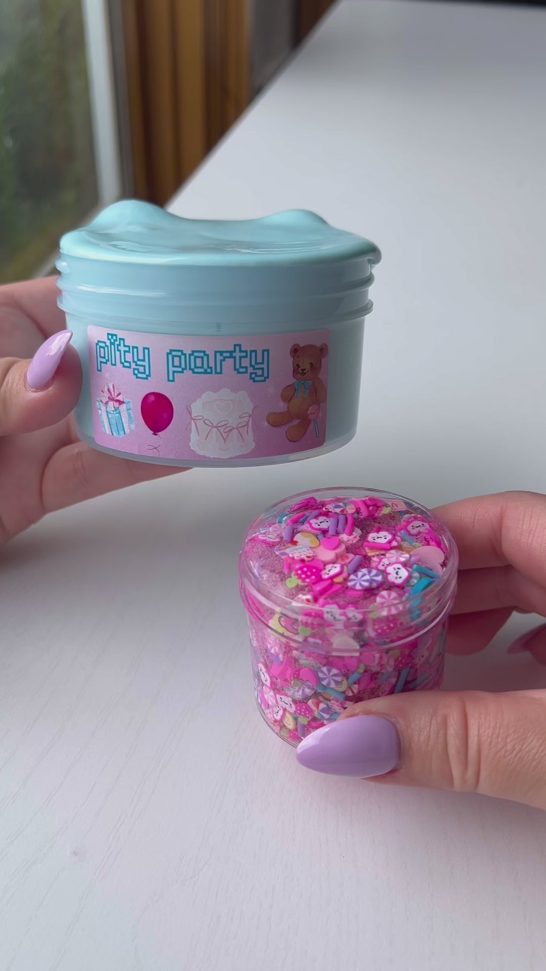 squishy clay slime that's fun to pop, stretch & poke! comes with 2 oz of super cute fimo crunch bomb. when mixed the slime becomes extra stretchy and makes awesome pops
