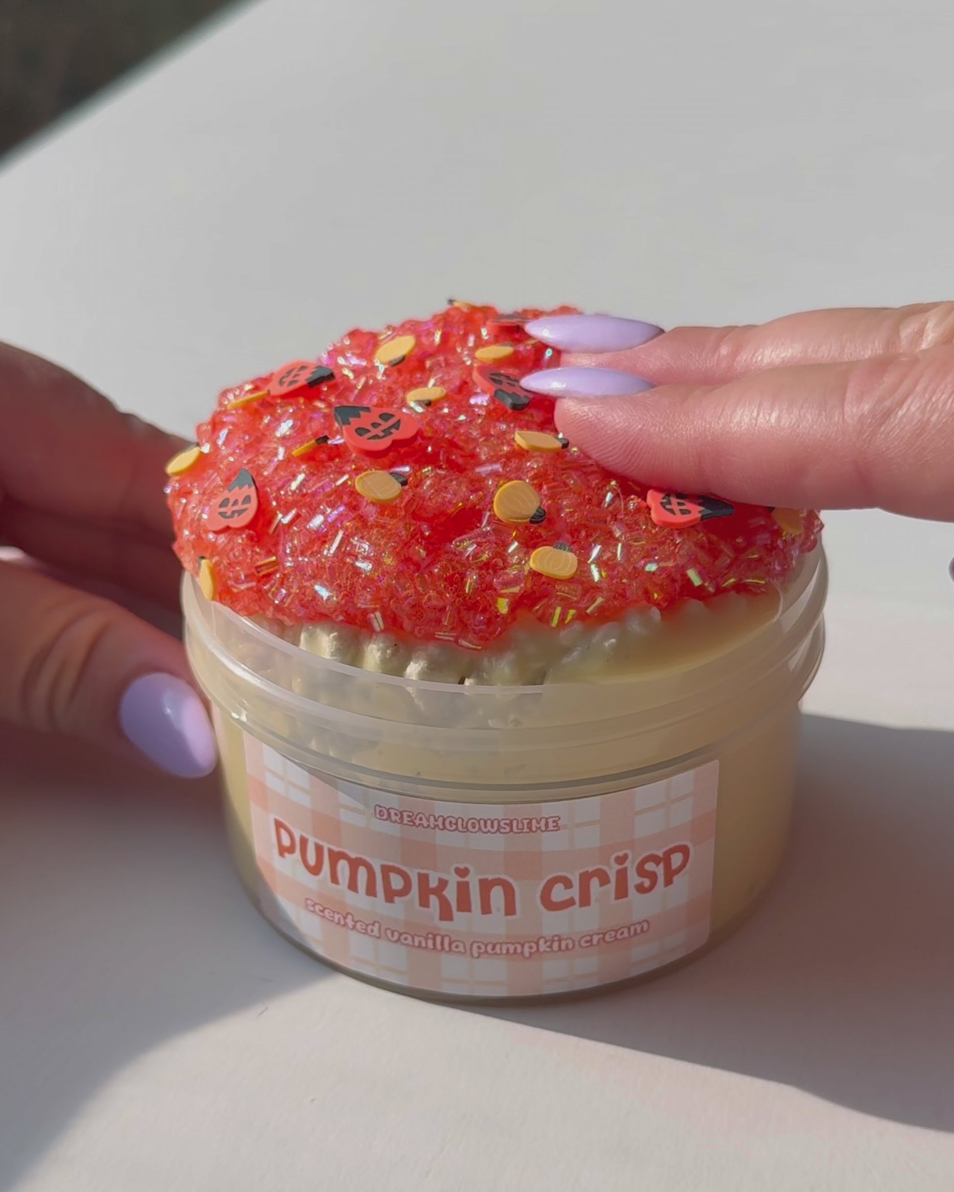 sizzly perlite slime with a glossy base. perlite is super lightweight and crispy. makes extreme asmr from just a light press! comes with a bingsu topper that makes the slime extra crispy