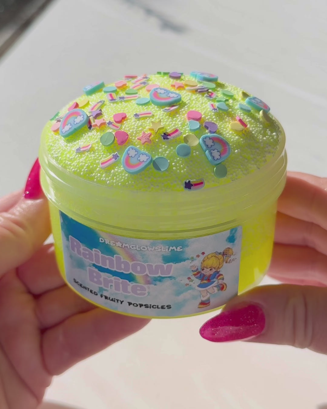 crunchy microfloam slime with a coated base that makes it less sticky. fun to stretch and squeeze and pop!! feels so good in your hands. comes with sprinkles on the side
