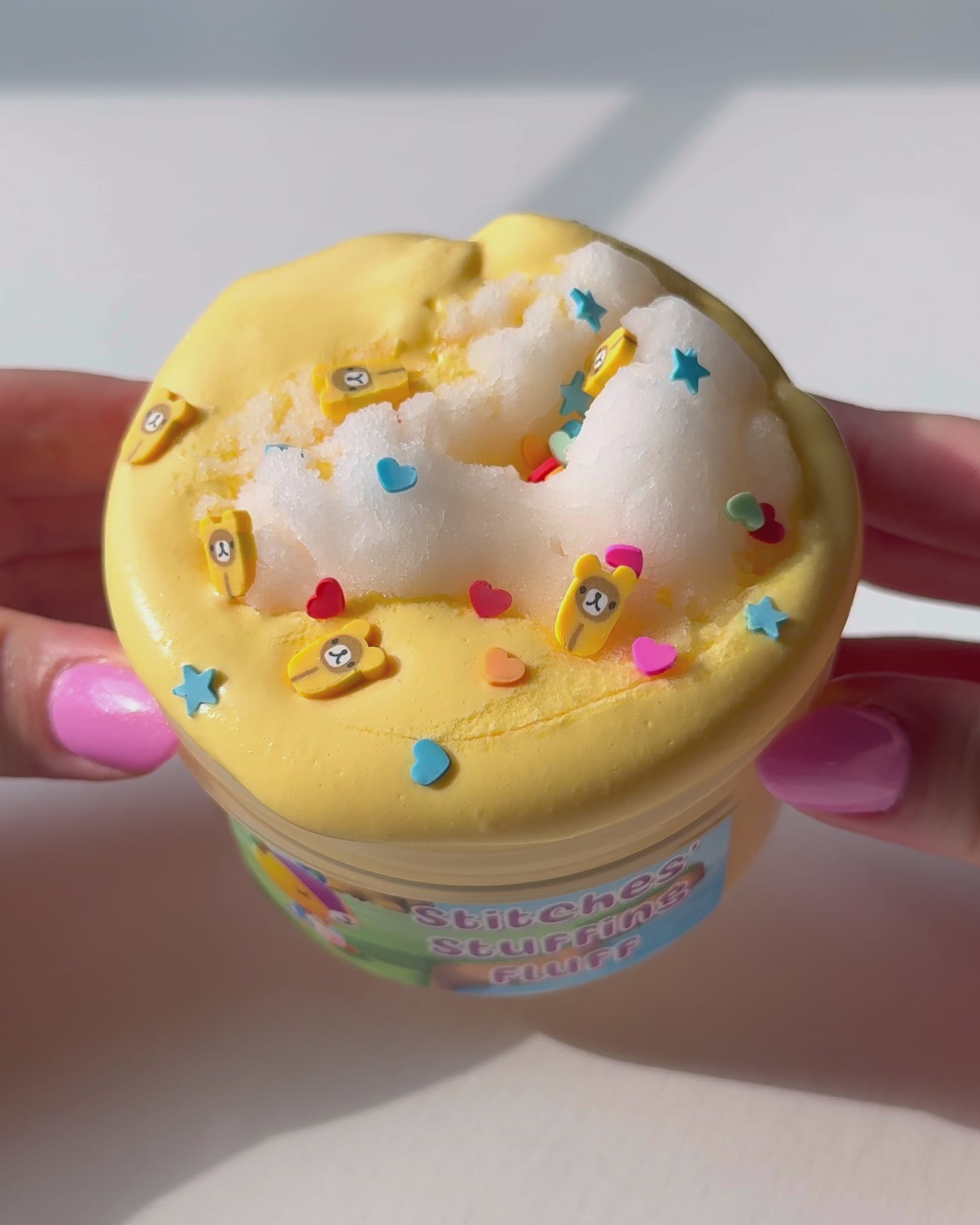 squishy new butter slime made with special new korean clay. feels delightfully soft on its own. add the icee slime for a new texture experience! comes with sprinkles on the side