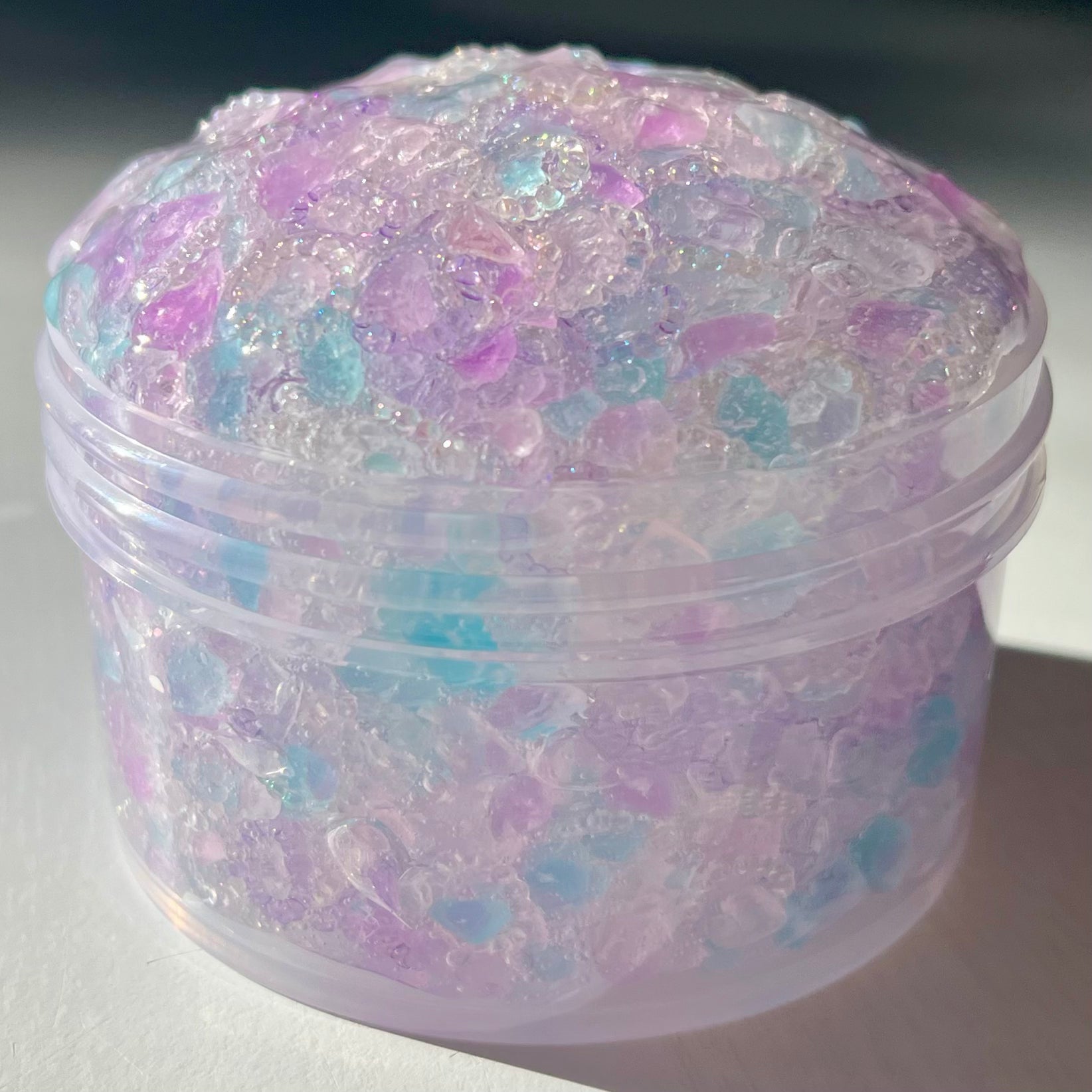 super crunchy silica ring bead slime with a coated base that makes it less sticky. so fun to stretch and squeeze and pop!!